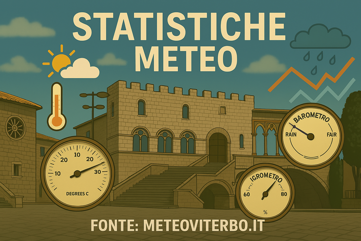 **Analisi climatica e meteo per il 13 maggio 2025 a Viterbo:** confronto tra i dati odierni e le medie degli ultimi 30 anni, con approfondimento su temperature, pioggia e fenomeni osservati sul territorio.